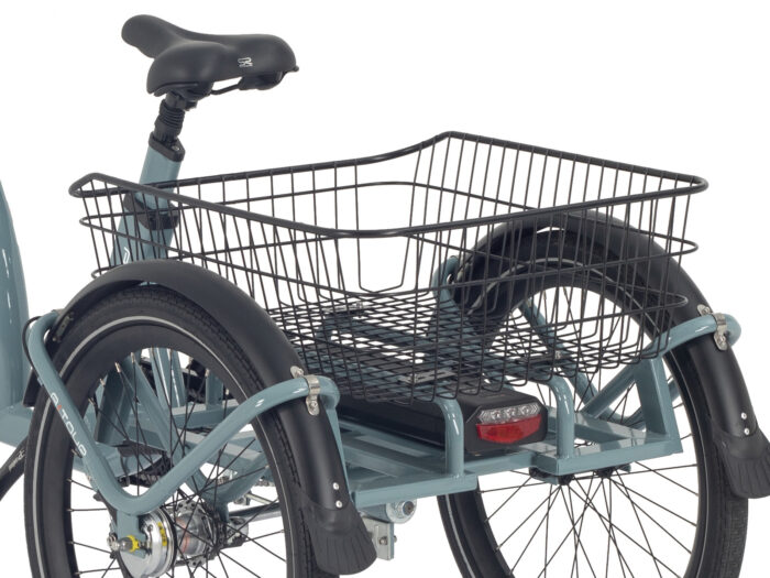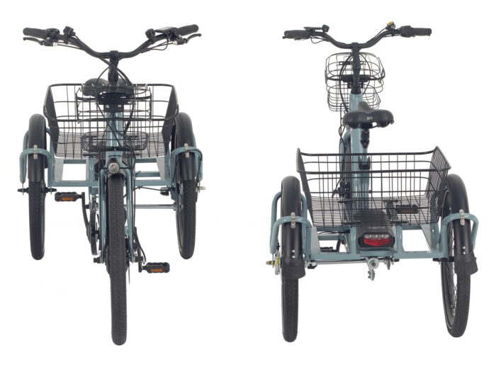 De Trike wordt aangedreven door een AKM-100 voorwielmotor met 50 Nm aan trekkracht. De accu is onder de grote mand, laag tussen de achterwielen gemonteerd. Dit geeft een prettige gewichtsverdeling. De accu kan zowel aan de fiets, als binnenshuis op worden geladen.