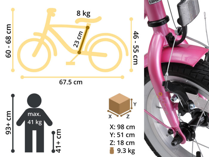 – Voorwielrem met op kinderhandjes aangepaste, instelbare greep