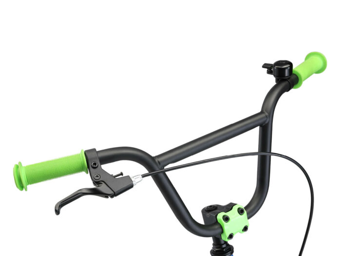 – Voorwielrem met op kinderhandjes aangepaste, instelbare greep