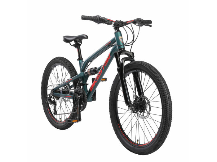 Fully MTB met 24 inch wielen, 21 versnellingen en schijfremmen.