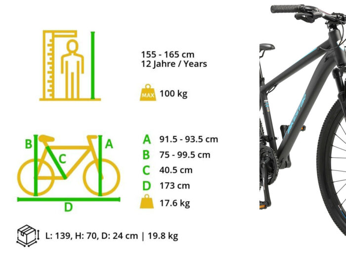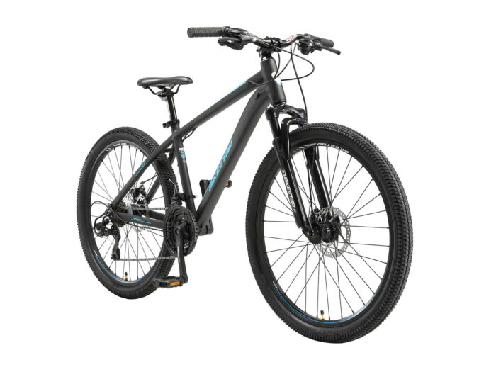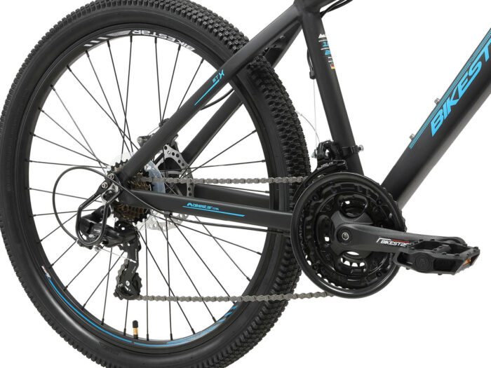 **Prima mountainbike** Zeer stabiel aluminium frame voor dagelijks gebruik op de berg, in de stad of op school. Met een bandenmaat van 26 inch en framemaat 16 inch is hij geschikt voor jongens, meisjes of volwassenen van ca. 155 tot 165cm. Met het 21-speed Shimano derailleur-systeem met bijna naadloze schakeling kun je elke situatie aan. Mechanische schijfremmen aan de voor- en achterkant zorgen voor de nodige controle. De fiets heeft een geveerde voorvork met 90 mm veerweg.