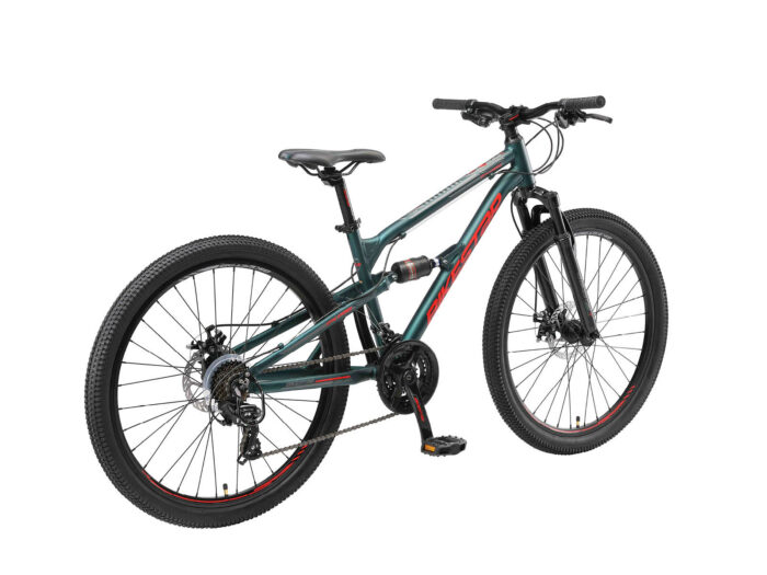 **Prima mountainbike** Zeer stabiel aluminium frame voor dagelijks gebruik op de berg, in de stad of op school. Met een bandenmaat van 26 inch en framemaat 16 inch is hij geschikt voor jongens, meisjes of volwassenen van ca. 150 tot 165cm. Met het 21-speed Shimano derailleur-systeem met bijna naadloze schakeling kun je elke situatie aan. Mechanische schijfremmen aan de voor- en achterkant zorgen voor de nodige controle. De fiets heeft een geveerde voorvork met 55 mm veerweg en een geveerde achterbrug.