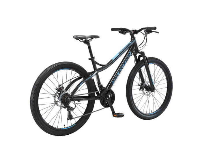 **Prima mountainbike** Zeer stabiel aluminium frame voor dagelijks gebruik op de berg, in de stad of op school. Met een bandenmaat van 26 inch en framemaat 16 inch is hij geschikt voor jongens, meisjes of volwassenen van ca. 150 tot 165cm. Met het 21-speed Shimano derailleur-systeem met bijna naadloze schakeling kun je elke situatie aan. Mechanische schijfremmen aan de voor- en achterkant zorgen voor de nodige controle. De fiets heeft een geveerde voorvork met 55 mm veerweg.