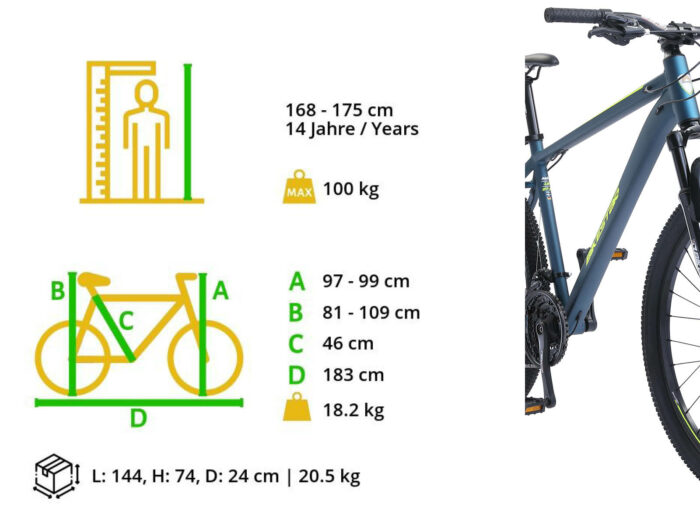 Bikestar Hardtail MTB Alu Sport L 27.5 inch 21 speed Blauw/geel