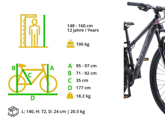 Bikestar Hardtail MTB Alu Sport S 27.5 inch 21 speed Zwart/roze