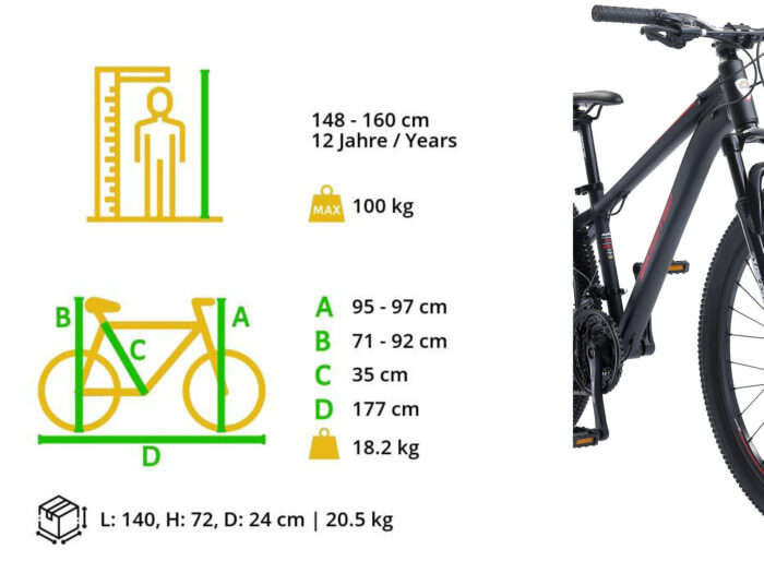 MTB met 21 versnellingen, 27.5 inch wielen, schijfremmen en 90 mm veerweg