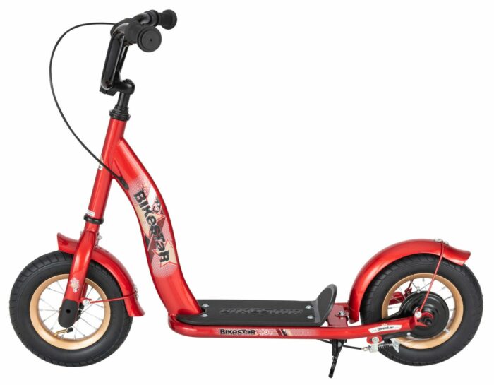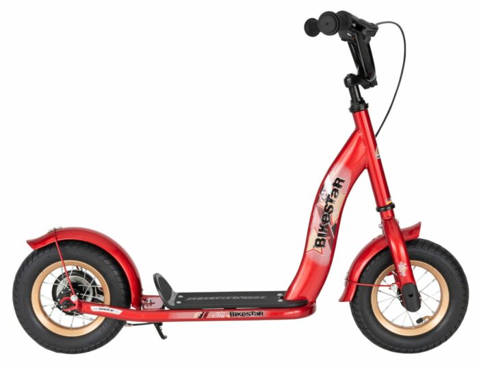 Klassieke stalen step met 10 inch luchtbanden, achterwielrem, zijstandaard en antislip voetbord. Vanaf 5 jaar.