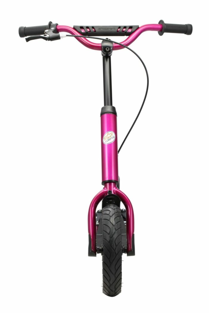 Stevige klassieke stalen step met 10 inch wielen, luchtbanden, achterwielrem en antislip voetbord. Vanaf 7 jaar.