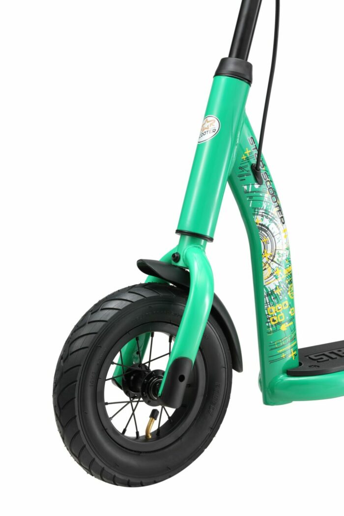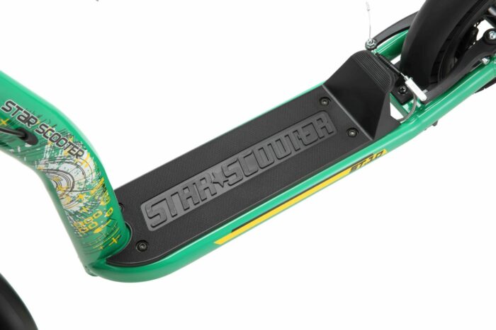 Stevige klassieke stalen step met 10 inch wielen, luchtbanden, achterwielrem en antislip voetbord. Vanaf 7 jaar.