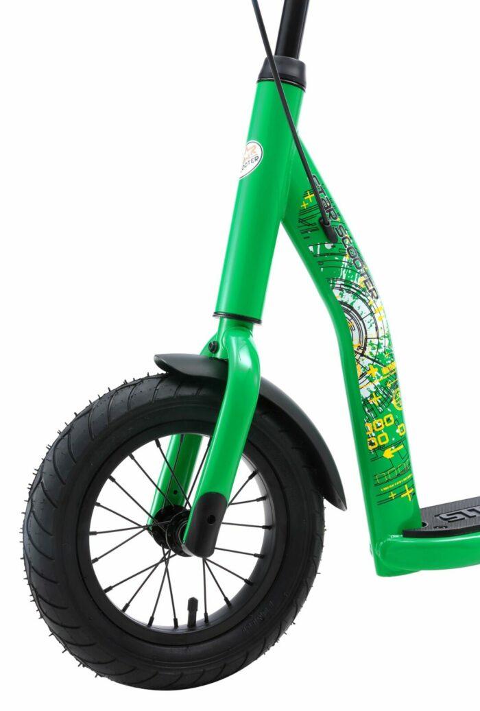 Langdurig plezier gegarandeerd, met 12 inch luchtbanden op hoogwaardige, kogelgelagerde spaakvelgen.