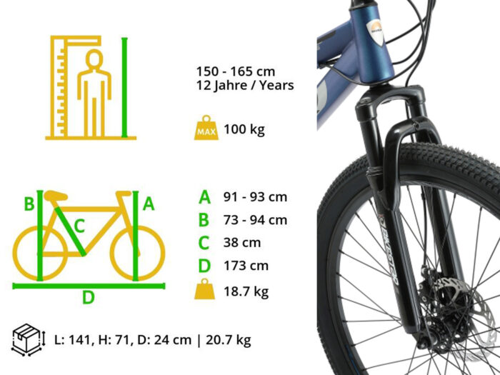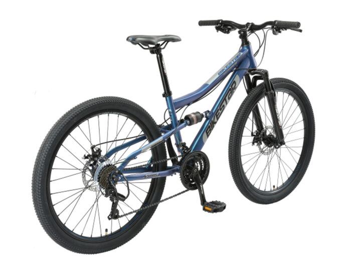 **Fully mountainbike** Zeer stabiel stalen frame voor dagelijks gebruik op de berg, in de stad of op school. Met een bandenmaat van 26 inch en framemaat 15 inch is hij geschikt voor jongens, meisjes of volwassenen van ca. 150 tot 165cm. Met het 21-speed Shimano derailleur-systeem met bijna naadloze schakeling kun je elke situatie aan. Mechanische schijfremmen aan de voor- en achterkant zorgen voor de nodige controle. De fiets heeft een geveerde voorvork met 55 mm veerweg en een geveerde achterbrug.