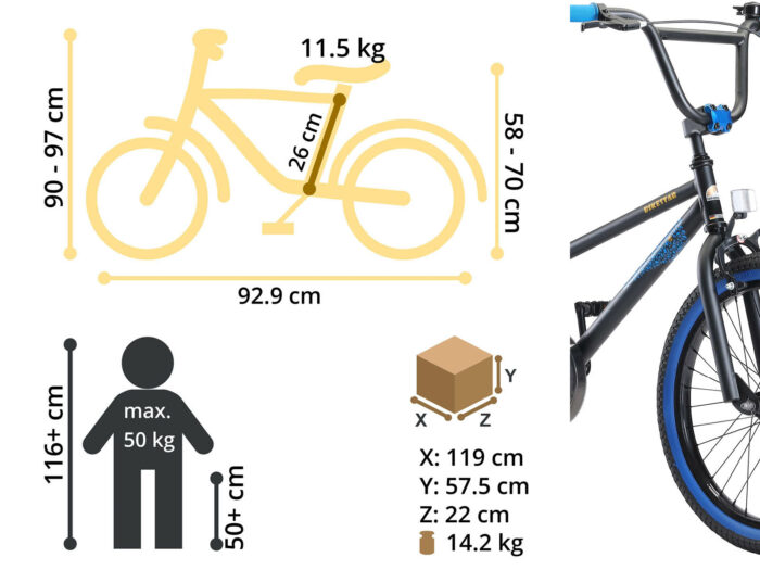 Kinderfiets in BMX stijl met 20 inch wielen en dubbel remsysteem