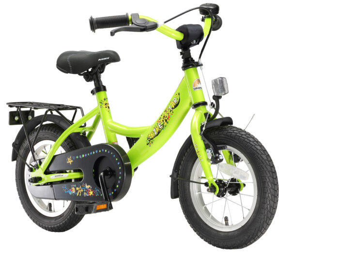 Veilige kinderfiets met terugtraprem, V-brake en 12 inch wielen met luchtbanden.