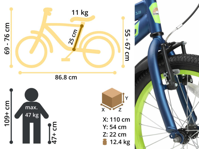 Stevige kinderfiets voor jongens en meisjes, 18 inch wielen, dubbel remsysteem