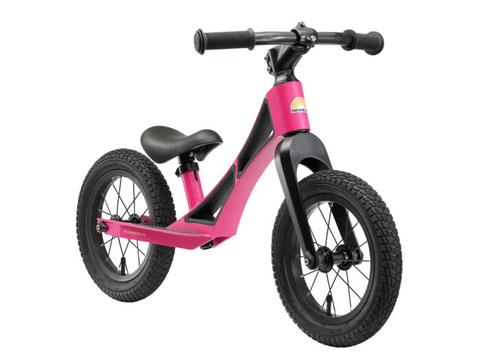 Magnesium loopfiets met 12 inch luchtbanden op spaakwielen, lichtgewicht maar zeer sterk. Verstelbaar ergonomisch zadeltje. Vanaf 3 jaar.