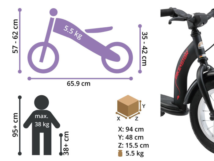 Bikestar, een bekende fabrikant uit Duitsland, biedt een keur aan loopfietsjes aan. Van hout, van aluminium en andere metalen, met massieve bandjes en luchtbandjes. Voor de allerjongste en ondernemende kinderen vanaf 18 maanden zijn er tot tweewielers om te bouwen driewielers. Voor de stoertjes zijn er MTB-loopfietsjes met 12 inch wielen. Het aanbod is kleurrijk en heel divers, maar altijd is er gelet op de grootste veiligheid in materiaalkeuze, bouwkwaliteit en ergonomie. Een feest voor het kind, een hele geruststelling voor de (groot)ouders.