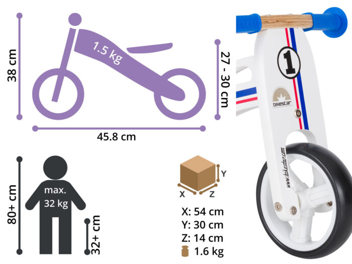 Bikestar mini loopfiets 2 in 1, hout, 7 inch, wit