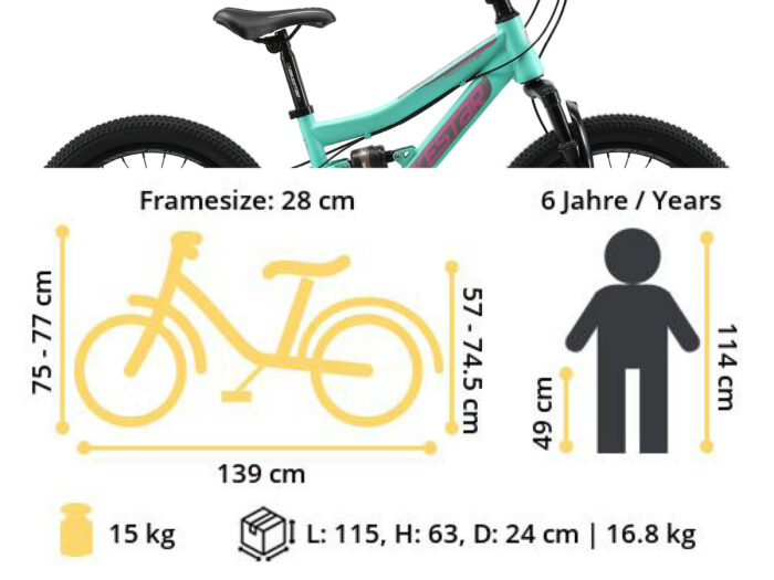 Fully MTB staal met 24 inch wielen, 21 versnellingen en schijfremmen.