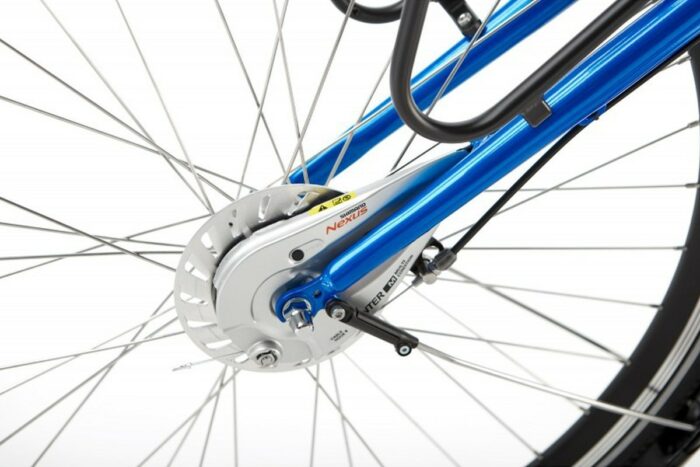 Elektrische damesfiets met transportrek, 3 versnellingsnaaf, 13 Ah accu. 26 inch wielen. Aluminium, grijs. Multi-inzetbare e-bike.