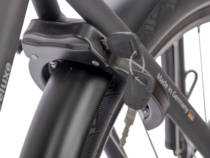 De accu is geïntegreerd in het frame. Zo ziet de Deluxe Plus er bijna uit als een normale fiets. Natuurlijk kunt u de batterij in een paar eenvoudige stappen verwijderen, bijvoorbeeld om deze in uw appartement op te laden. Wil je afstappen en al duwend genieten van het landschap? Dankzij de duwhulp beweegt de Deluxe Plus stapvoets tijdens het wandelen.