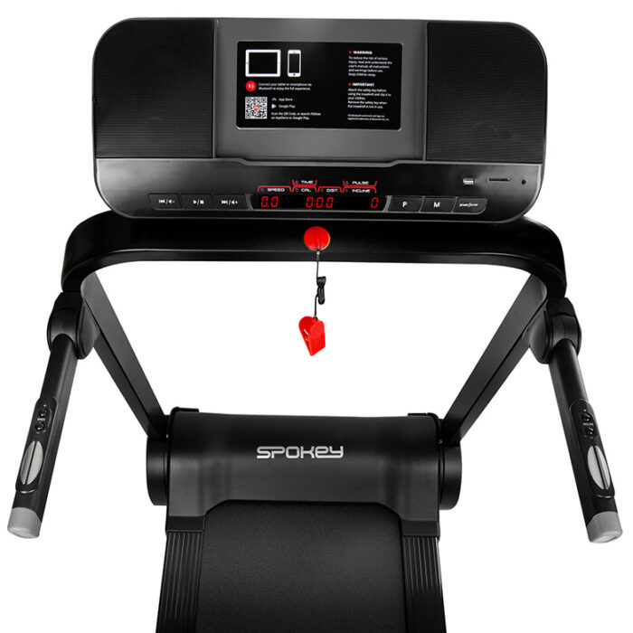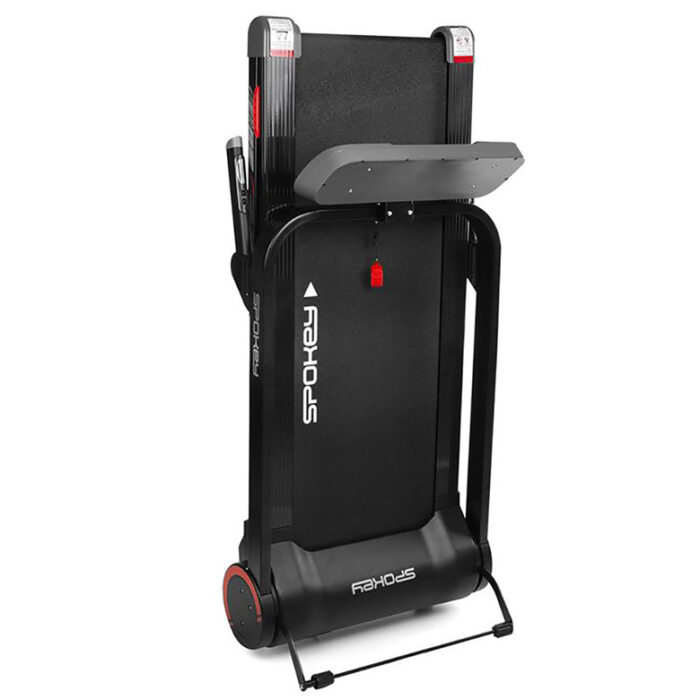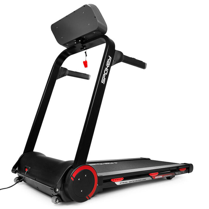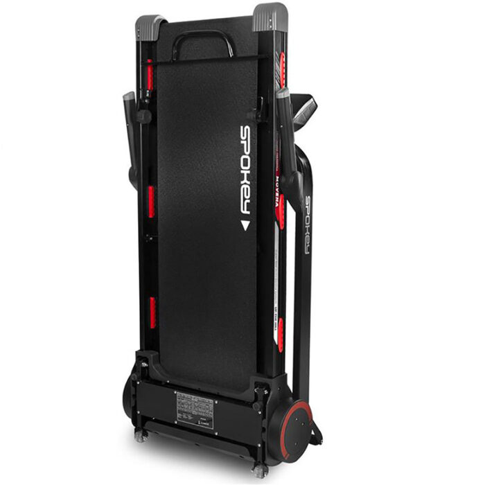 **De Spokey MOVENA elektrische loopband bereikt een snelheid van maximaal 18 km/u, biedt uitstekende demping met het innovatieve S.A.S.-trillingsdempingssysteem. (Shock Absorption System) 6-punts, wat de belasting van de gewrichten vermindert. De loopband kan verticaal en horizontaal worden opgevouwen en plat worden opgeborgen, waardoor hij in elke kamer past en geen onnodige ruimte inneemt wanneer hij niet wordt gebruikt. Via Bluetooth kun je verbinding maken met de speciale FITSHOW-applicatie, die je nog meer trainingsopties en gegevens over je voortgang geeft. Kies uit 12 verschillende trainingsprogramma’s en aanvullend: 3 gebruikersprogramma’s, 3 HRC-programma’s, Body FAT en handmatig, waarmee je het ritme en de intensiteit van het hardlopen kunt aanpassen aan jouw behoefte. De band kan op 12 verschillende hellingsgraden worden ingesteld, en met grote luidsprekers en een MP3-ingang kunt u trainen met uw favoriete muziek.**