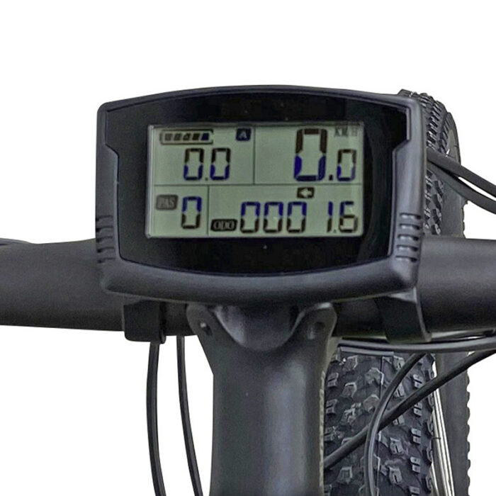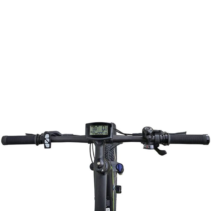 Elektrische MTB, 27,5 inch, met 10 versnellingen derailleur, geïntegreerde accu 13,2Ah, LCD display en schijfremmen. Groen.