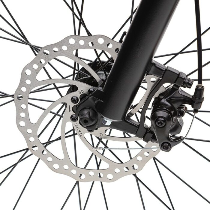 Mountainbiken is een heerlijke sport, waarbij het juist nog leuker wordt bij slecht weer dan bij mooi weer. Met een elektrische mountainbike wordt het nog leuker, omdat je net wat makkelijker die eigenlijk te steile helling op komt, door rul zand rijdt of door vette blubber glijdt. Met een ondersteuning tot 25 kilometer per uur kom je nog eens ergens, je kunt verder met dezelfde energie. Het mooie van deze E-MTB is, is dat de motor goed verstopt zit in het achterwiel, tussen schijfrem en tandwielkrans en de accu is geïntegreerd in het frame, dus het valt bijna niet op dat je wat hulp hebt.