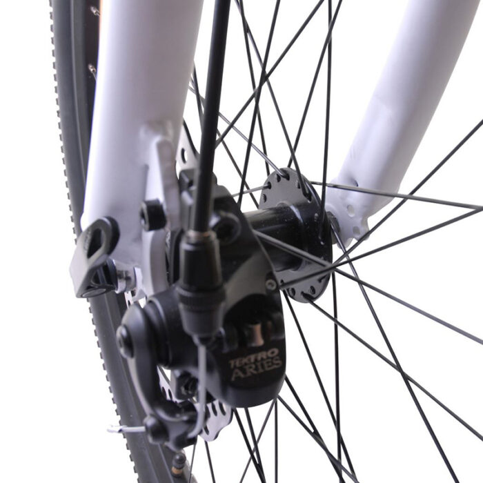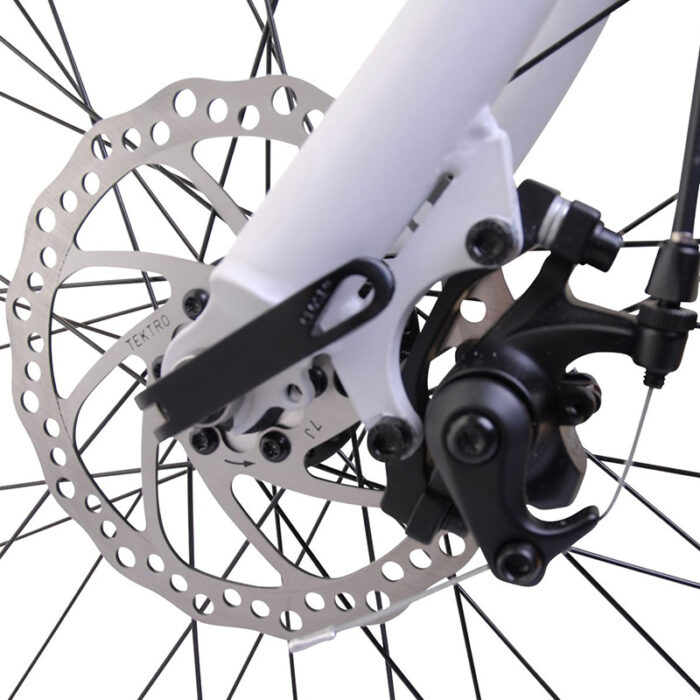 Met een elektrische trekkingbike maak je eenvoudig mooie tochten door woeste streken. Dankzij de 27,5 inch MTB wielen en de 21 versnellingen derailleur – en niet te vergeten de hulp van de achterwielmotor en de 500Wh accu – is er maar heel weinig dat je tegen kan houden. Ja, de krachtige schijfremmen, die lukt dat wel. LCD display met 5 ondersteuningskeuzes, Walk Assist, verlichting via de accu em MTB stuur. Toffe fiets!