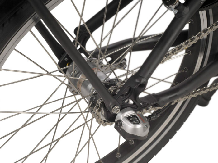 Dankzij de geïntegreerde accu en de 3 versnellingsnaaf is de fiets compact en vergt ze weinig onderhoud. De verlichting voldoet aan de StVZO norm, zodat u ook op vakantie in Duitsland gerust de weg op kunt. Deze compacte elektrische vouwfiets is heel goed voor dagelijks gebruik in te zetten, omdat de 10.4 Ah accu de fiets een rijbereik van 60 tot 90 km geeft en u er comfortabel op kunt fietsen. Het verstelbare stuur en de lange zadelpen maken de fiets geschikt voor mensen van ca 160 tot 185 cm.
