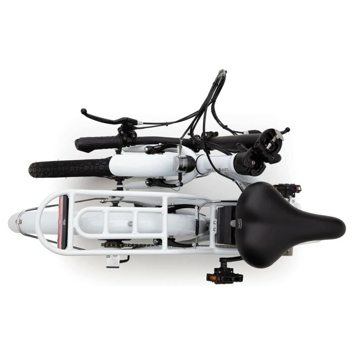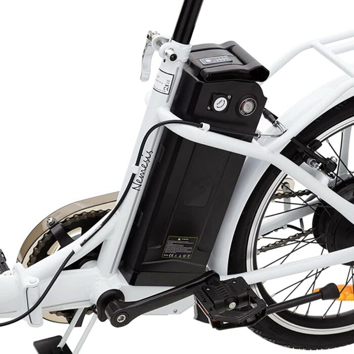 Ervaar het gemak van elektrisch fietsen gecombineerd met het gemak van een opvouwbare fiets die meekan in het OV, past in een kofferbak van een auto en die je voor het parkeren eventueel gewoon mee naar binnen kunt nemen en ergens onder je bureau of in een hoekje van het kantoor kunt stallen. De Nemesis serie van Vecocraft bestaat uit eenvoudig in te klappen e-bikes met 20 inch wielen, een verstelbaar stuur en zadel, en velgremmen. De serie biedt keuze uit 7.8, 10 en 13 Ah accu’s en de framekleuren zwart en wit. Uitgevouwen maat: 178 cm x 109 cm x 63 cm, ingeklapt 78 cm x 61 cm x 45 cm.