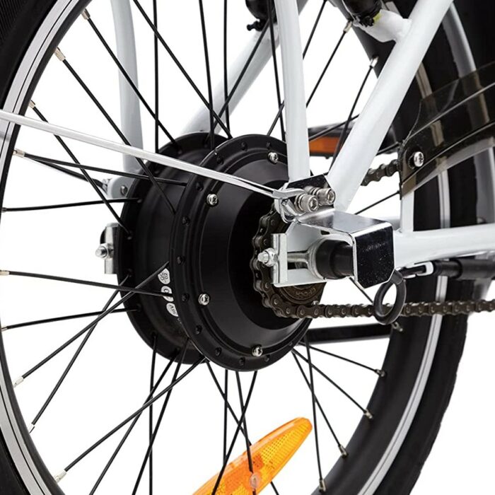 De 250 Watt motor in het achterwiel is krachtig genoeg om ook een heuveltje of dijkje zonder probleem te nemen. Omdat de motor in het achterwiel zit is het weggedrag prettiger dan van e-bikes met een voorwielmotor. De aandrijving voelt natuurlijker aan. De fiets laat zich compact opvouwen en is met 23 kilo voor de meeste mensen goed over een drempeltje te tillen. De accu is uitneembaar. De fiets is voorzien van spatborden, een zijstandaard en verlichting die voldoet aan de eisen van de Duitse wetgever (StVZO). U bent hierdoor gegarandeerd altijd goed zichtbaar.