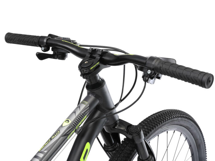 **Prima mountainbike** Zeer stabiel aluminium frame voor dagelijks gebruik op de berg, in de stad of op school. Met een bandenmaat van 27.5 inch en framemaat 16.5 inch is hij geschikt voor jongens, meisjes of volwassenen van ca. 165 tot 175cm. Met het 21-speed Shimano derailleur-systeem met bijna naadloze schakeling kun je elke situatie aan. Mechanische schijfremmen aan de voor- en achterkant zorgen voor de nodige controle. De fiets heeft een geveerde voorvork met 55 mm veerweg en een geveerde achterbrug.