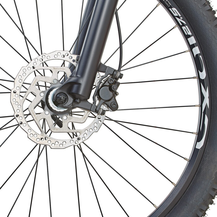 Met de hoogwaardige Shimano Deore 10-speed derailleur ben je optimaal uitgerust voor elke rit. De schakelsensor zorgt ervoor dat de voeding van de aandrijving tijdens het schakelproces kortstondig wordt onderbroken. Dit vermindert mechanische slijtage en voorkomt schade aan de componenten. Als remmen staan u twee krachtige hydraulische schijfremmen ter beschikking. Een bijzonder kenmerk is de Suntour XCR geveerde voorvork met lockout-functie. De veerweg van 100 mm kan intuïtief worden geactiveerd of gedeactiveerd met een schakelaar op het stuur. Dit geeft je een extra niveau van controle wanneer je off-road bent.