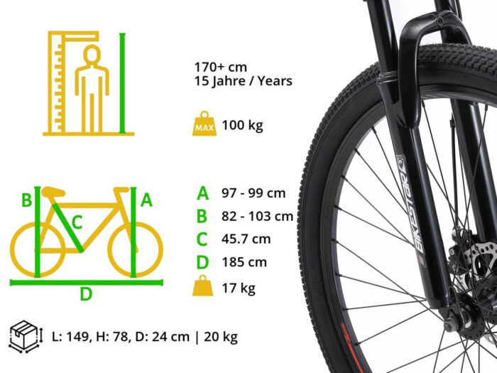 MTB met 21 versnellingen, 29 inch wielen, schijfremmen en geveerde voorvork