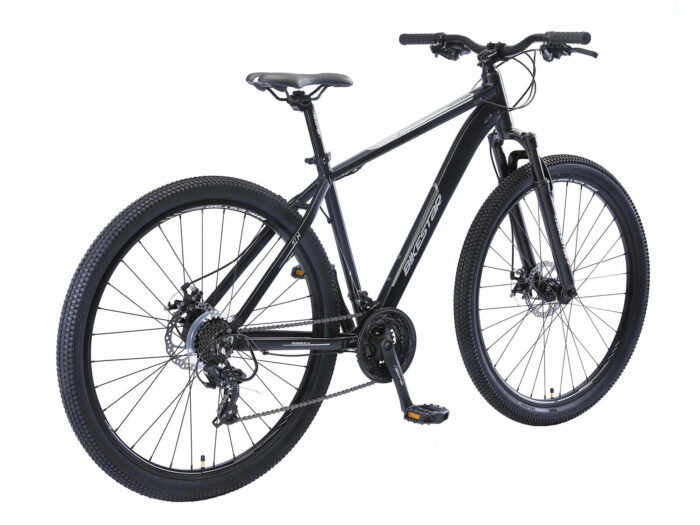 **Prima mountainbike** Zeer stabiel aluminium frame voor dagelijks gebruik op de berg, in de stad of op school. Met een bandenmaat van 29 inch en framemaat 19 inch is hij geschikt voor jongens, meisjes of volwassenen vanaf ca. 175cm. Met het 21-speed Shimano derailleur-systeem met bijna naadloze schakeling kun je elke situatie aan. Mechanische schijfremmen aan de voor- en achterkant zorgen voor de nodige controle. De fiets heeft een geveerde voorvork met 55 mm veerweg.