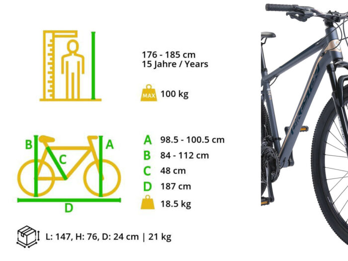 Bikestar Hardtail MTB Alu Sport Large 29 Inch 21 Speed grijs/goud
