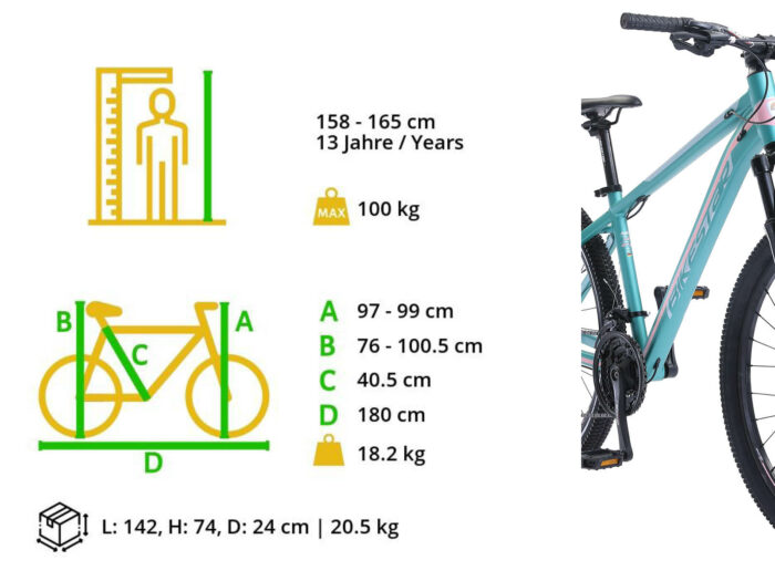 Bikestar Hardtail MTB Alu Sport M 27,5 Inch 21 Speed Turquoise/Roze