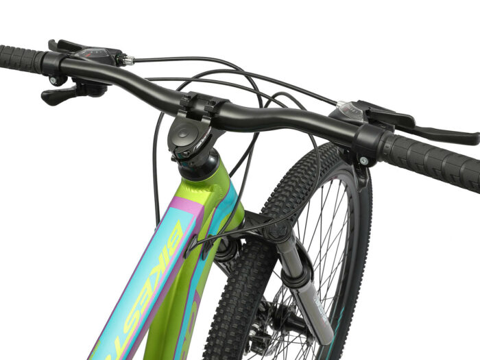 **Prima mountainbike** Zeer stabiel aluminium frame voor dagelijks gebruik op de berg, in de stad of op school. Met een bandenmaat van 29 inch en framemaat 17 inch is hij geschikt voor jongens, meisjes of volwassenen van ca. 165 tot 175cm. Met het 21-speed Shimano derailleur-systeem met bijna naadloze schakeling kun je elke situatie aan. Mechanische schijfremmen aan de voor- en achterkant zorgen voor de nodige controle. De fiets heeft een geveerde voorvork met 90 mm veerweg.