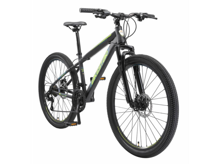 MTB staal met 26 inch wielen, 21 versnellingen en schijfremmen.