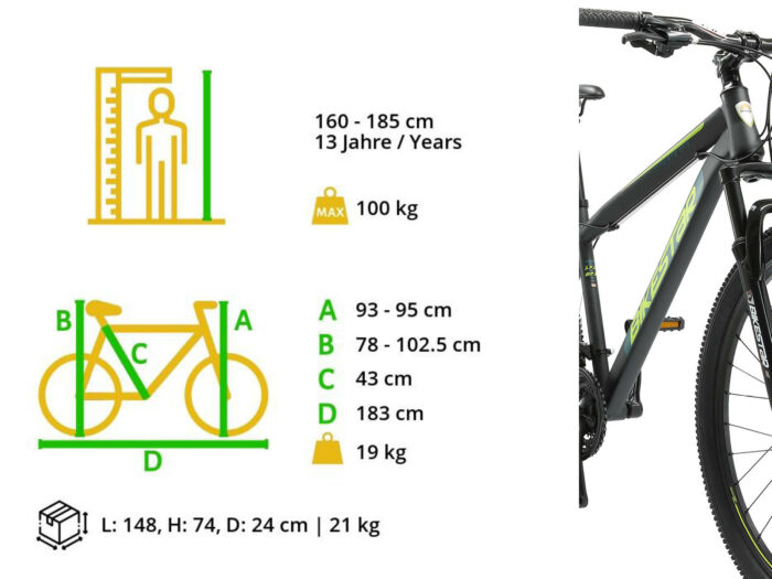 MTB staal met 27,5 inch wielen, 21 versnellingen en schijfremmen.
