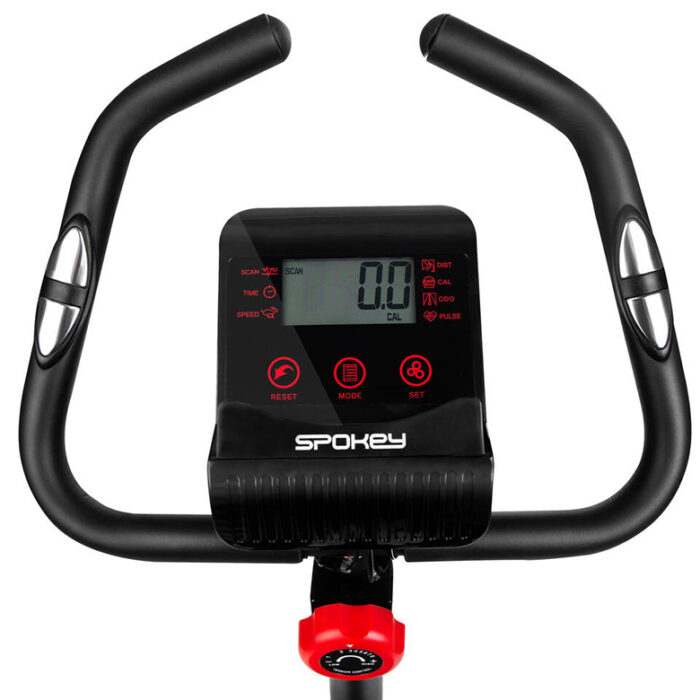 De Spokey LORDI hometrainer is uitgerust met de OPTIMIZED POWER-technologie, waardoor een wiel van vijf kilogram werkt als een wiel van zeven kilogram, wat de trainingseffecten zeker verhoogt. Wij verzekeren u dat u het verschil zult voelen! Of je nu net aan je sportavontuur begint of een ervaren atleet bent, dankzij de soepele weerstandsaanpassing in 8 stappen kun je het trainingsniveau precies aanpassen aan je mogelijkheden en verwachtingen. U kunt de resultaten van uw oefeningen continu volgen, zodat elke volgende rit efficiënter is dan de vorige. Op het display zie je je trainingstijd, snelheid, afstand, calorieën en hartslag. Op de handgrepen zijn polssensoren geplaatst – daarmee is het nog eenvoudiger om de effectiviteit van je eigen training te controleren. De Lordi hometrainer geeft je de mogelijkheid om te trainen wanneer je maar wilt – op de tijden die jij kiest en vooral ongeacht het weer! Het is een bewezen en veilige vervanging voor sporten buiten en in de sportschool.