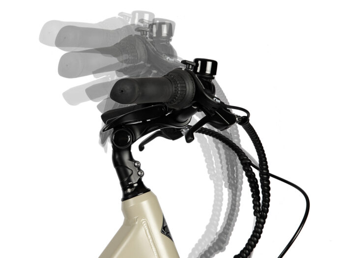 De 13 Ah accu is keurig opgenomen in het solide aluminium frame en omdat de Bafang achterwielmotor door de cassette met 7 tandwielen voor een groot deel aan het oog wordt onttrokken is het niet direct duidelijk dat deze fraaie fiets voorzien is van elektrische trapondersteuning. Totdat u andere weggebruikers fluitend voorbijfietst, natuurlijk.