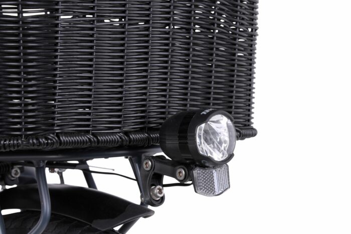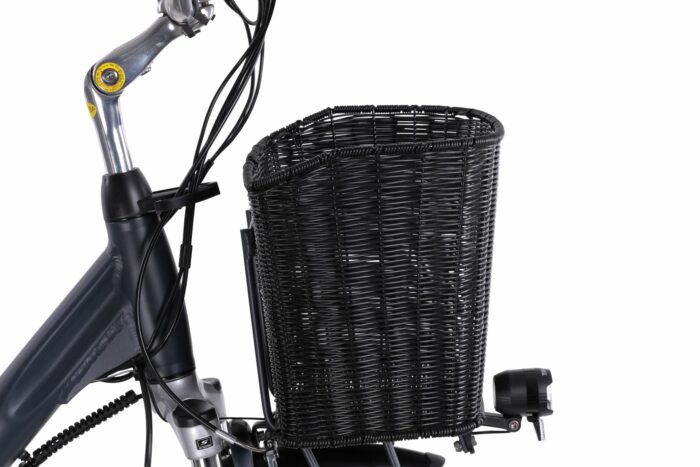 Zeer stijlvolle elektrische damesfiets, voorzien van kunstrieten mand op de voordrager. Deze luxe afgewerkte e-bike heeft een Shimano Nexus 7 versnellingsnaaf, een LCD display met 5 ondersteuningsstanden, Walk Assist, verlichting die werkt op de accu, een geveerde voorvork en een soepel gelzadel. De voorwielmotor wordt gevoed door een 13Ah of 15.6 Ah accu. Keus uit 3 moderne framekleuren. Heerlijk flaneren op de fiets, of even snel naar de stad voor een kopje koffie? Geen probleem! Dag in dag uit naar college of werk? Met plezier! Een hele zondag touren door de bossen? Kan allemaal!