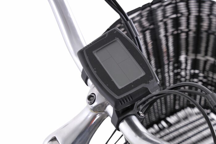 Aluminium luxe elektrische transportfiets, damesframe 50 cm, met Shimano Nexus 7 versnellingsnaaf, LCD display en 13Ah accu. Met mand. Grijs