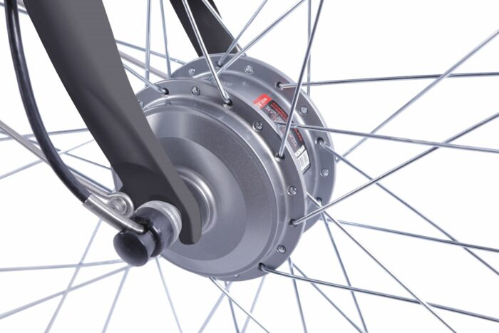 Luxe, comfortabele stadsfiets met voorwielmotor, Shimano Nexus 7 versnellingsnaaf, velgremmen én terugtraprem. Op het LCD scherm ziet u hoe hard en hoe ver u rijdt, houdt u de accucapaciteit in de gaten en schakelt u een van de 5 ondersteuningsstanden in, of de Walk Assist. Ook de verlichting bedient u met het display. Deze fijn rijdende fiets is leverbaar in diverse kleuren en 3 accucapaciteiten. Welke past u het beste? Of u nu lekker gaat shoppen, even om een boodschap gaat of de fiets gebruikt voor woon-werk verkeer, u kunt op deze e-bike vertrouwen! Ook zeer geschikt voor een wat langer tochtje door stad en land.