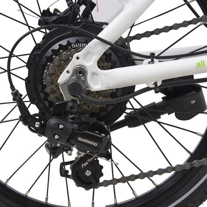 Elektrische vouwfiets met geïntegreerde accu, 10,4 Ah, schijfremmen, 7 versnellingen derailleur, LCD display en verlichting. Wit