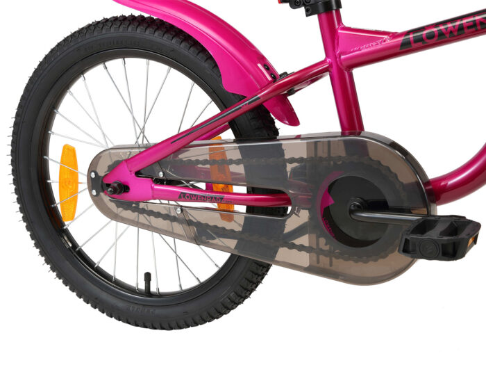 Voorwielrem met op kinderhandjes aangepaste, instelbare greep. Terugtraprem.
