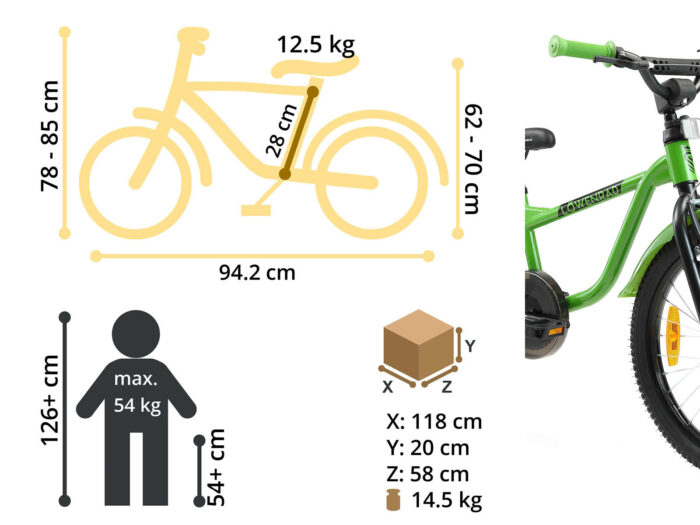 Kinderfiets met 20 inch wielen, luchtbanden en dubbel remsysteem