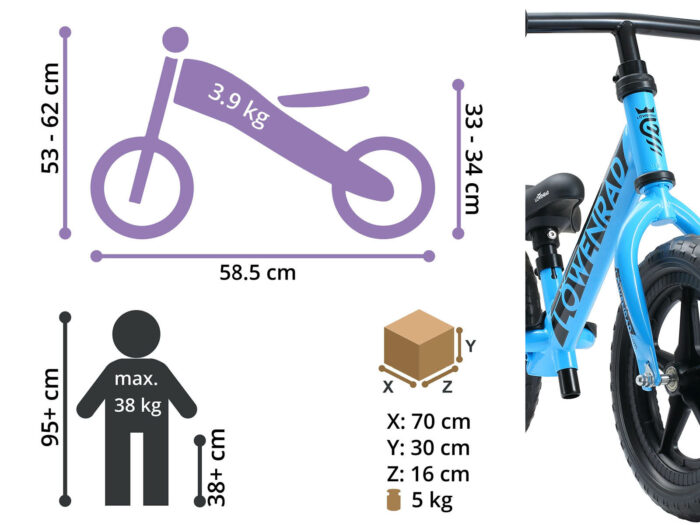 Lichtgewicht, ergonomische loopfiets met 12 inch antilek banden op sterwielen. Vanaf 3 jaar. Verstelbare zadel- en stuurhoogte.