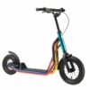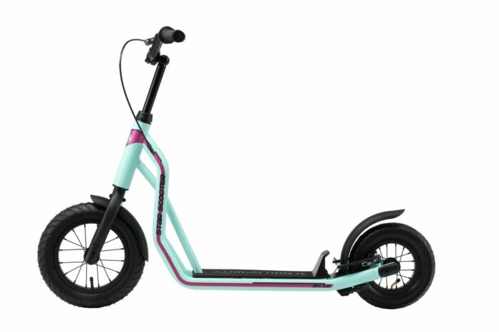 Zeer stabiel stalen buisframe met meerder slagvaste laklagen in diverse kleuren. Deze step voldoet aan alle normen en vereisten van de EU, stuurt licht, is duurzaam en gaat lang mee. De step is veilig, met gladde lasnaden. Dit model heeft een kindvriendelijke handrem voor extra veiligheid tijdens het spelen. Langdurig plezier gegarandeerd, met 12 inch luchtband voor en 10 inch achter.